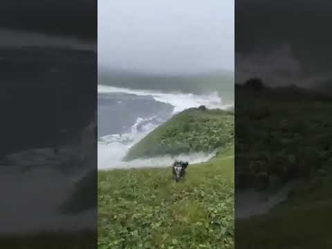Man walking his dog captures moment tsunami waves reach Russia’s Kamchatka Peninsula
