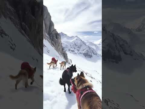 Alpine dogs pushing their limits on frozen slopes #husky #mountaineering #extreme